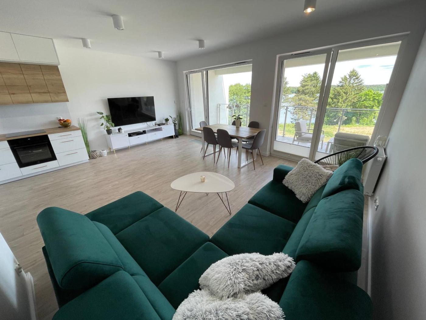 Apartament z 2 sypialniami. In the well-fitted kitchenette, guests will find a stovetop, a refrigerator, a dishwasher and kitchenware. The spacious apartment provides air conditioning, a washing machine, a terrace with lake views as well as a shared bathroom featuring a bath. The unit offers 3 beds and 1 futon. Apartament - 7 osobowy. Powierzchnia pokoju ok.: 73 mkw.