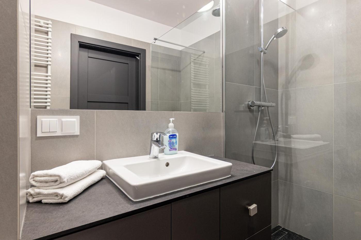 Apartament z balkonem. Featuring a private entrance, this apartment comprises 1 living room, 1 separate bedroom and 1 bathroom with a walk-in shower and a hairdryer. In the well-equipped kitchen, guests will find a stovetop, a refrigerator, a dishwasher and kitchenware. This wheelchair accessible apartment features a washing machine, a seating area with a flat-screen TV and a roll-in shower. The unit offers 2 beds. Apartament - 4 osobowy. Powierzchnia pokoju ok.: 44 mkw.