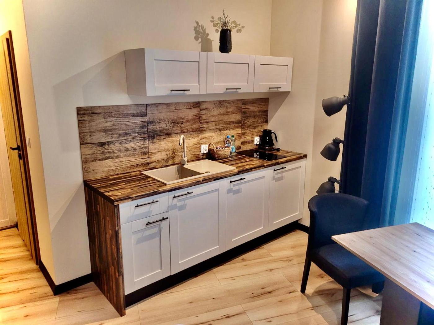 Apartament z 1 sypialnią. The well-fitted kitchen has a stovetop, a refrigerator, kitchenware and an oven. This apartment features a private entrance, flat-screen TV, garden views, as well as chocolate for guests. The unit offers 1 bed. Apartament - 2 osobowy. Powierzchnia pokoju ok.: 24 mkw.