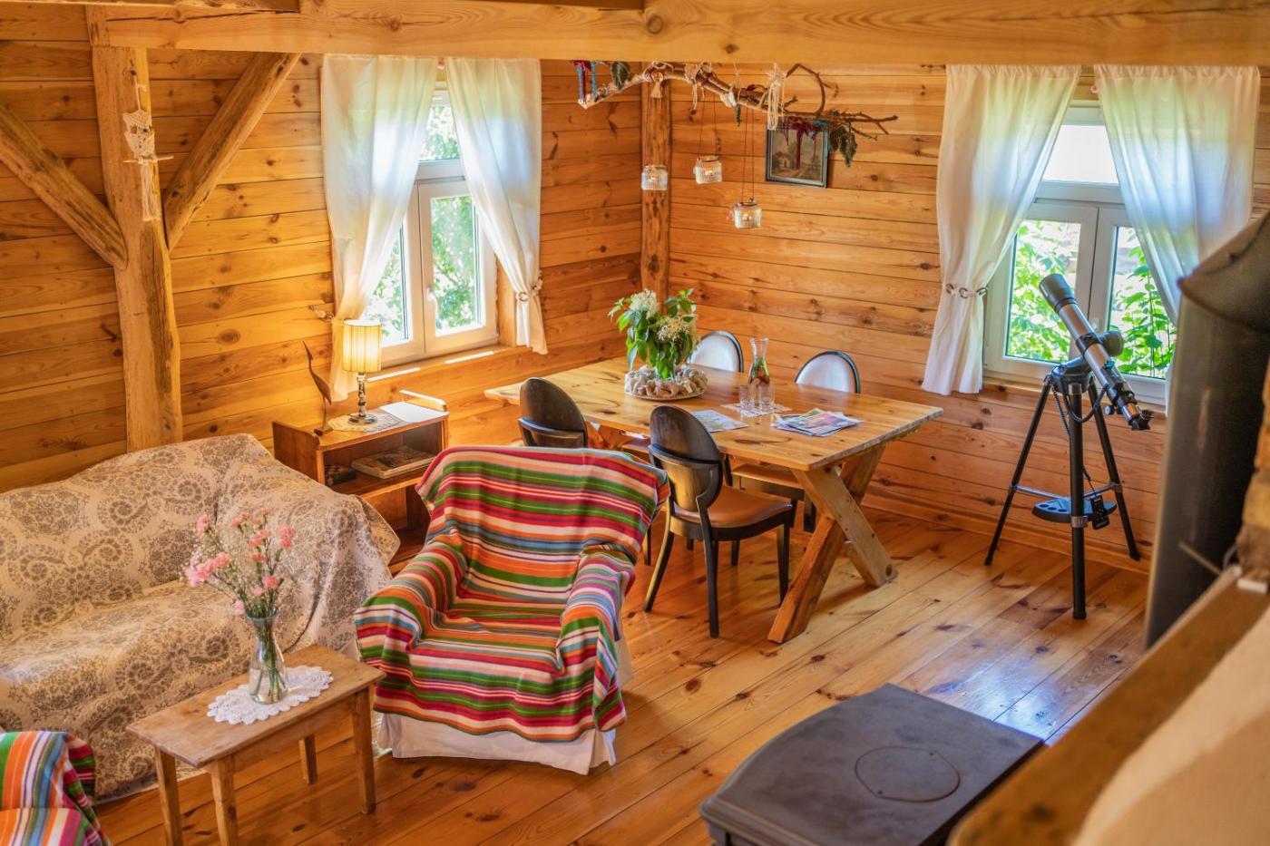 Dom z 2 sypialniami. This holiday home features a fireplace. Boasting a private entrance, this holiday home features 2 living rooms, 2 separate bedrooms and 1 bathroom with a bath and a hairdryer. Guests will find a stovetop, a refrigerator, a dishwasher and kitchenware in the fully equipped kitchen. The holiday home also comes with a barbecue. Featuring a terrace with garden views, this holiday home also features a washing machine and a flat-screen TV. The unit has 4 beds. Dom wakacyjny - 4 osobowy. Powierzchnia pokoju ok.: 100 mkw.